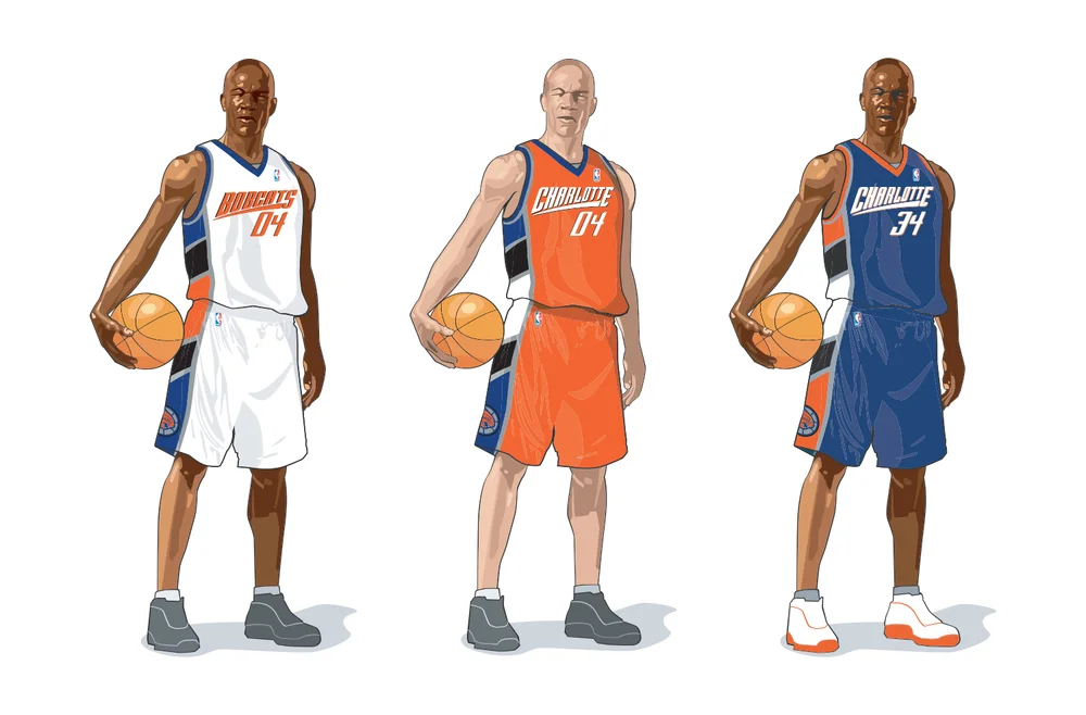 In 2003, I was lucky enough to help develop some of the key pieces in the identity of the brand new NBA team, the Charlotte Bobcats. While the primary logos had been established, I got to hop in on designs for the shocking new uniforms, the court designs, their broadcast network and even the mascot, Rufus Lynx.